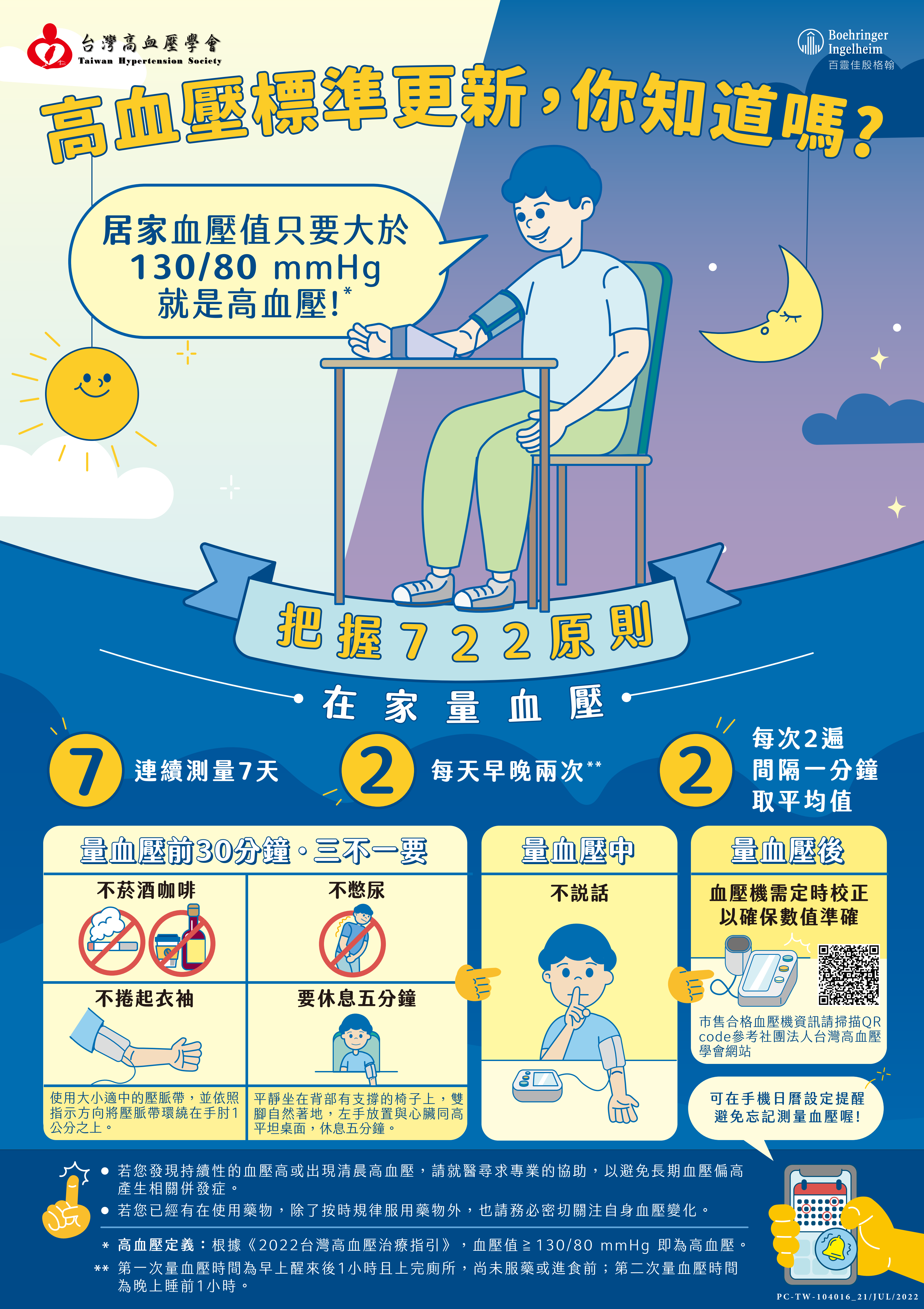 ※若您已經有在使用藥物,除了按時規律服用藥物外,也請務必密切關注自身血壓變化。