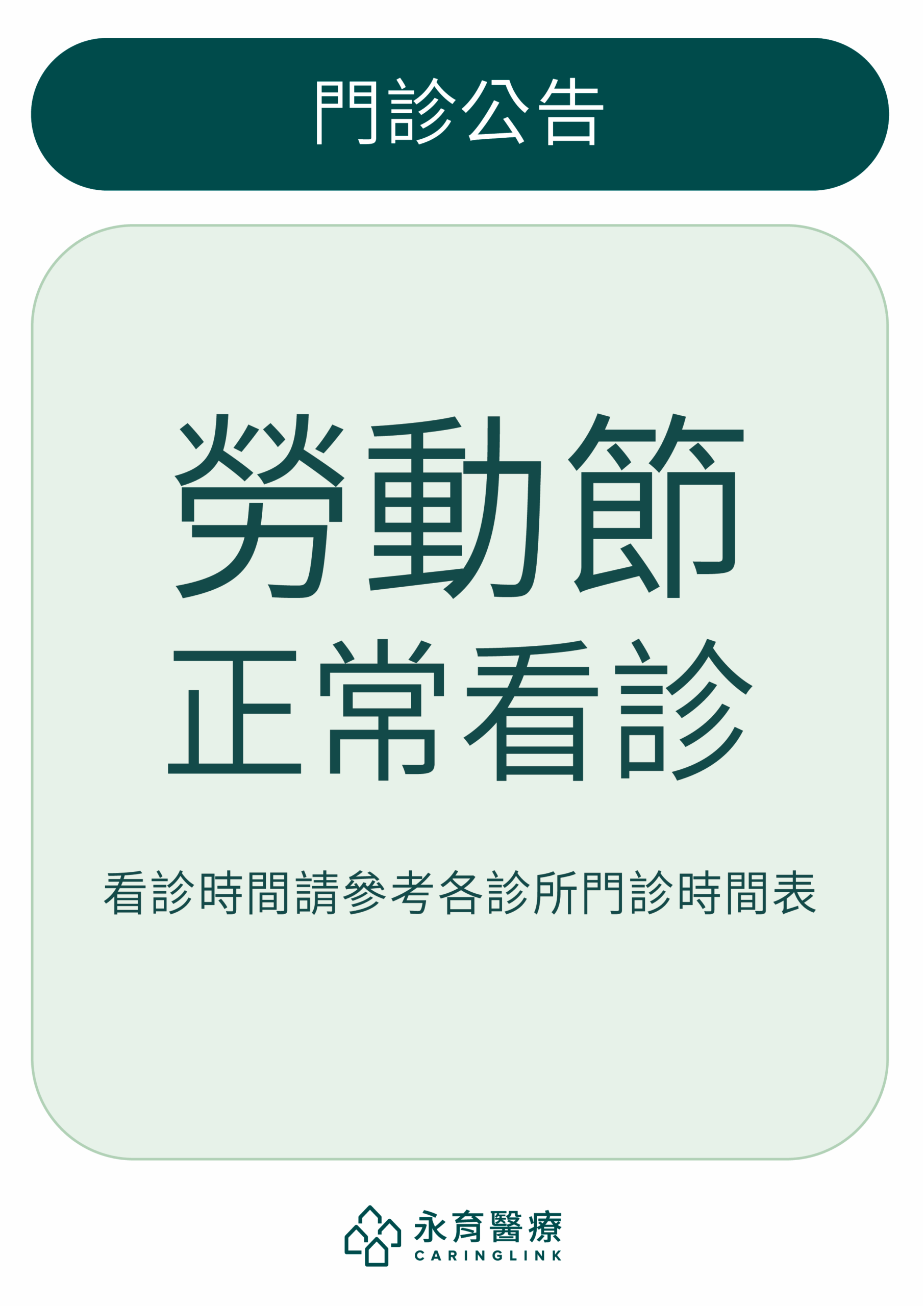 【假期公告】各診所勞動節假期門診公告