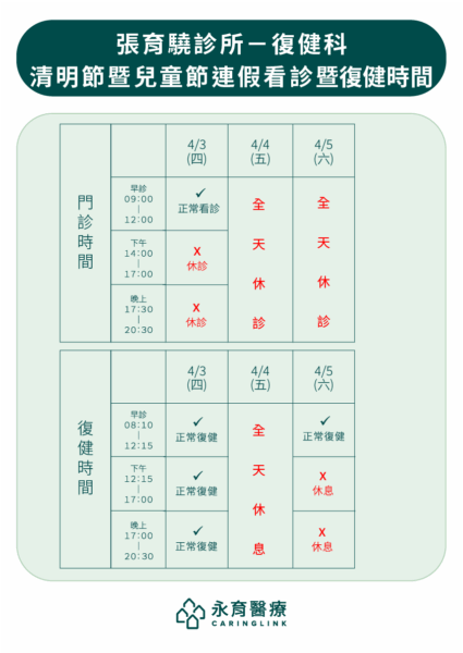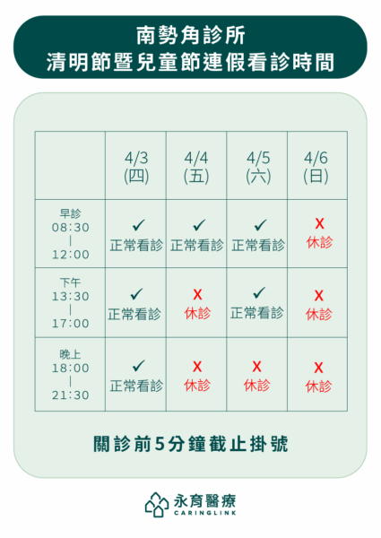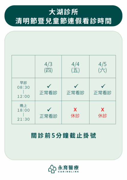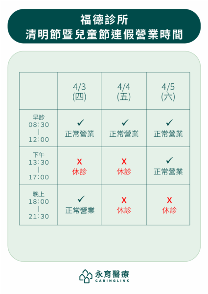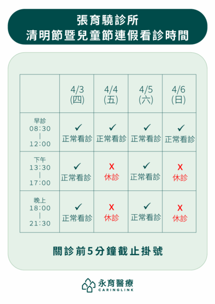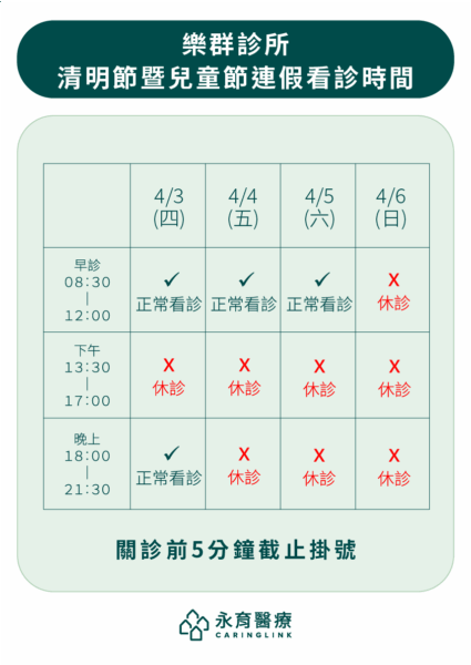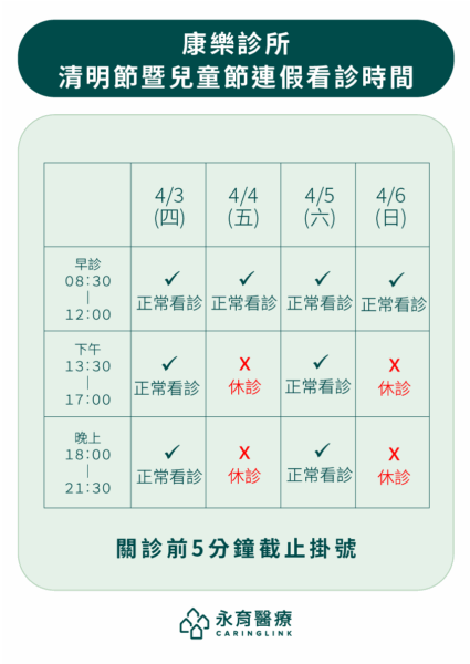 【假期公告】各診所清明節暨兒童節連假門診公告