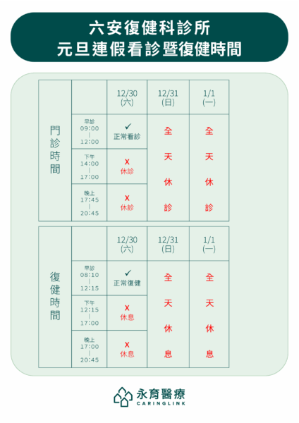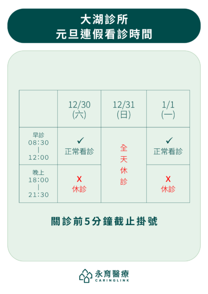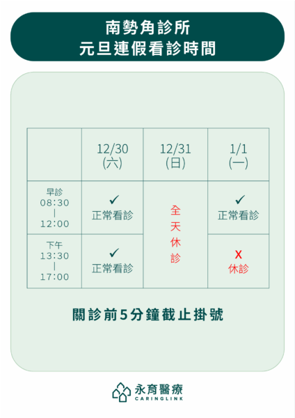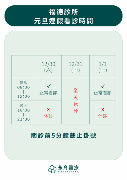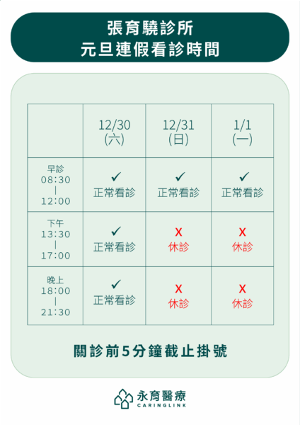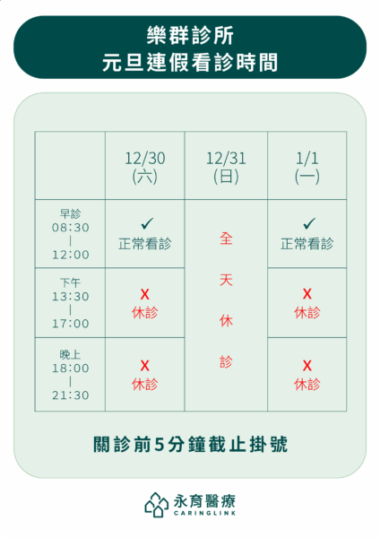 【假期公告】各診所元旦連假門診公告