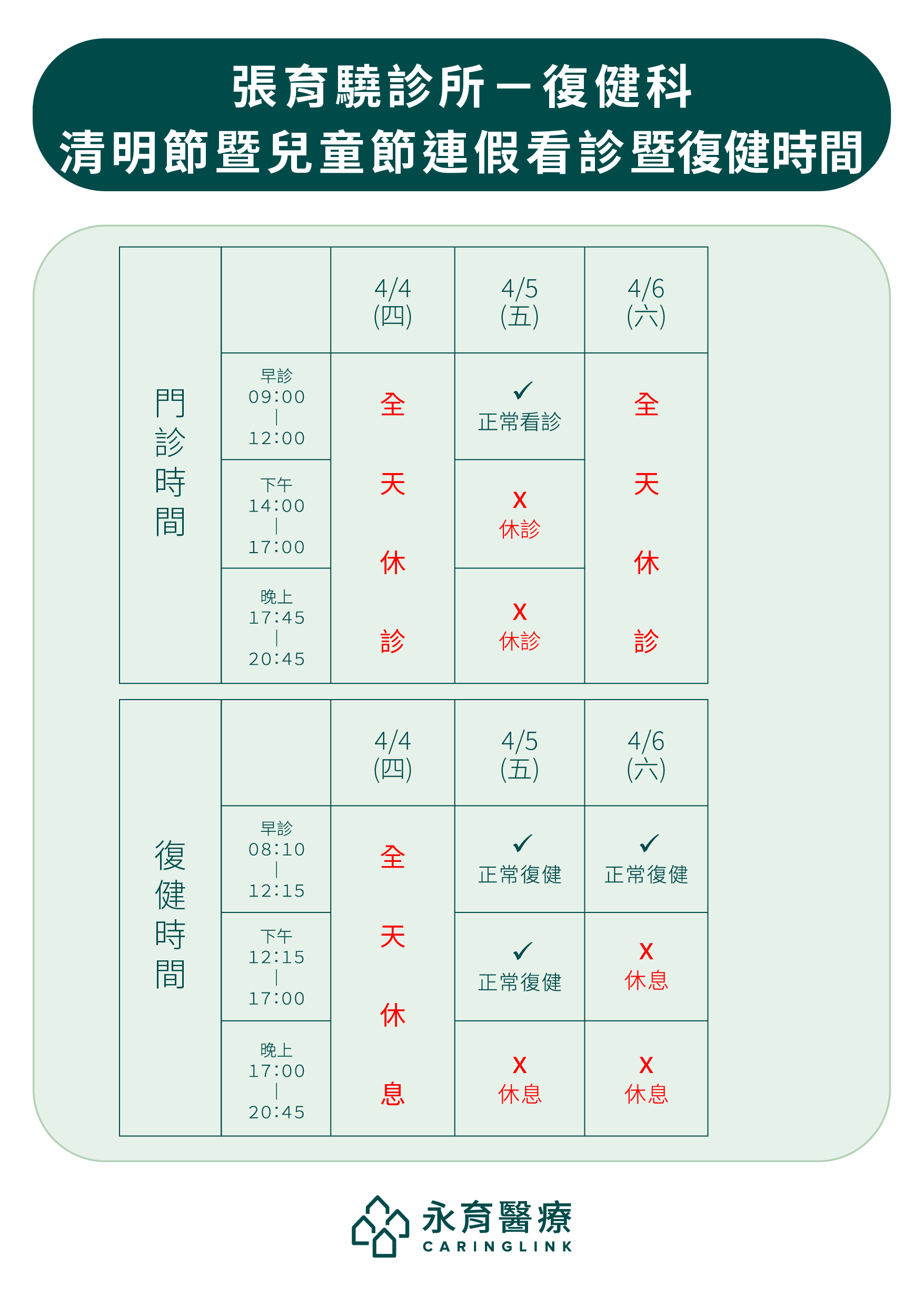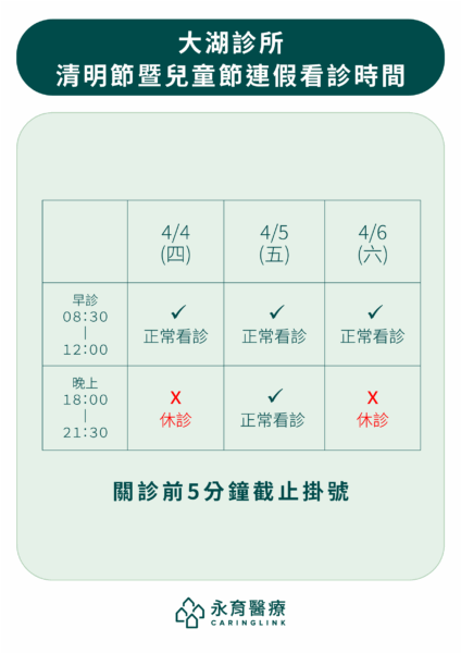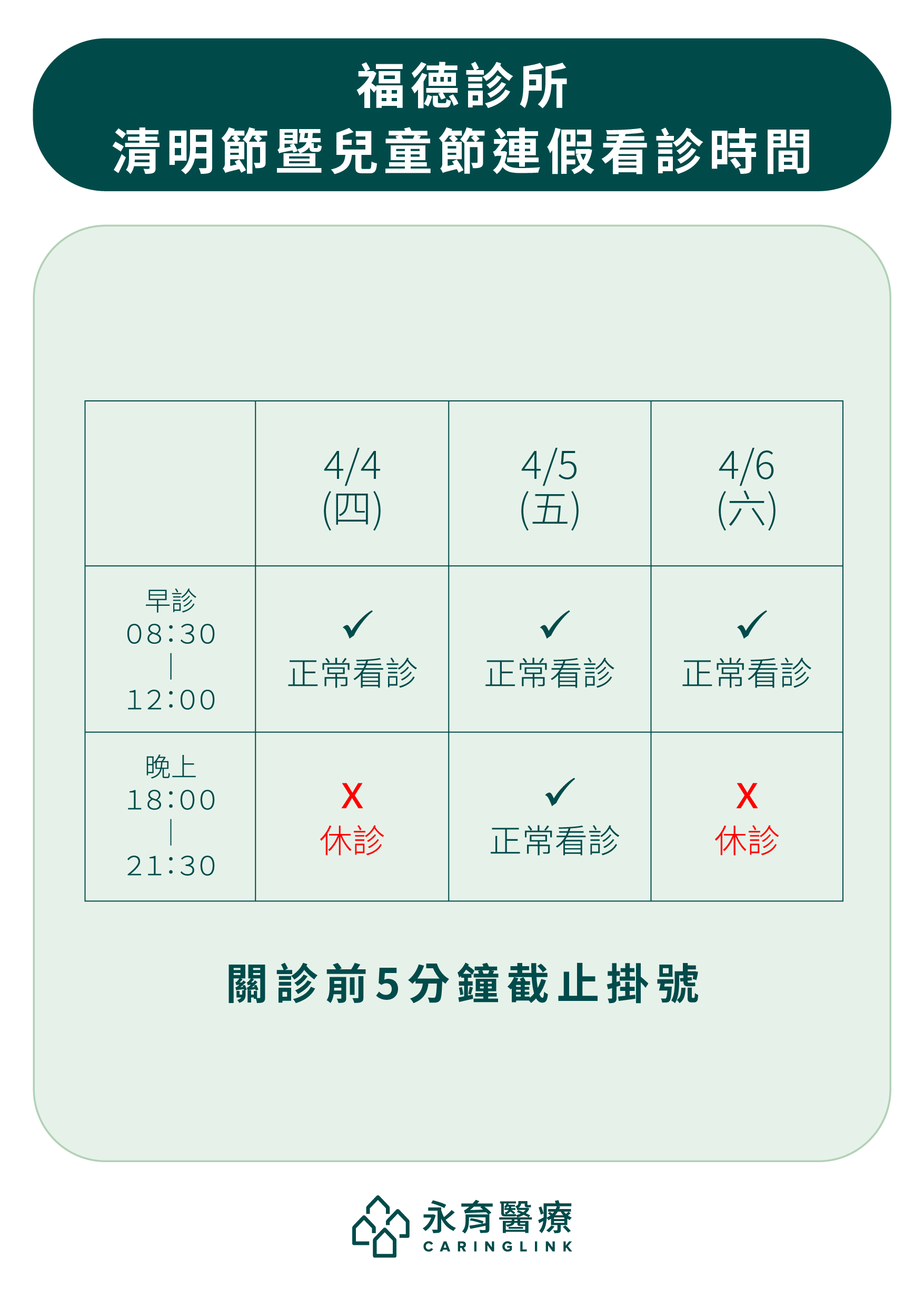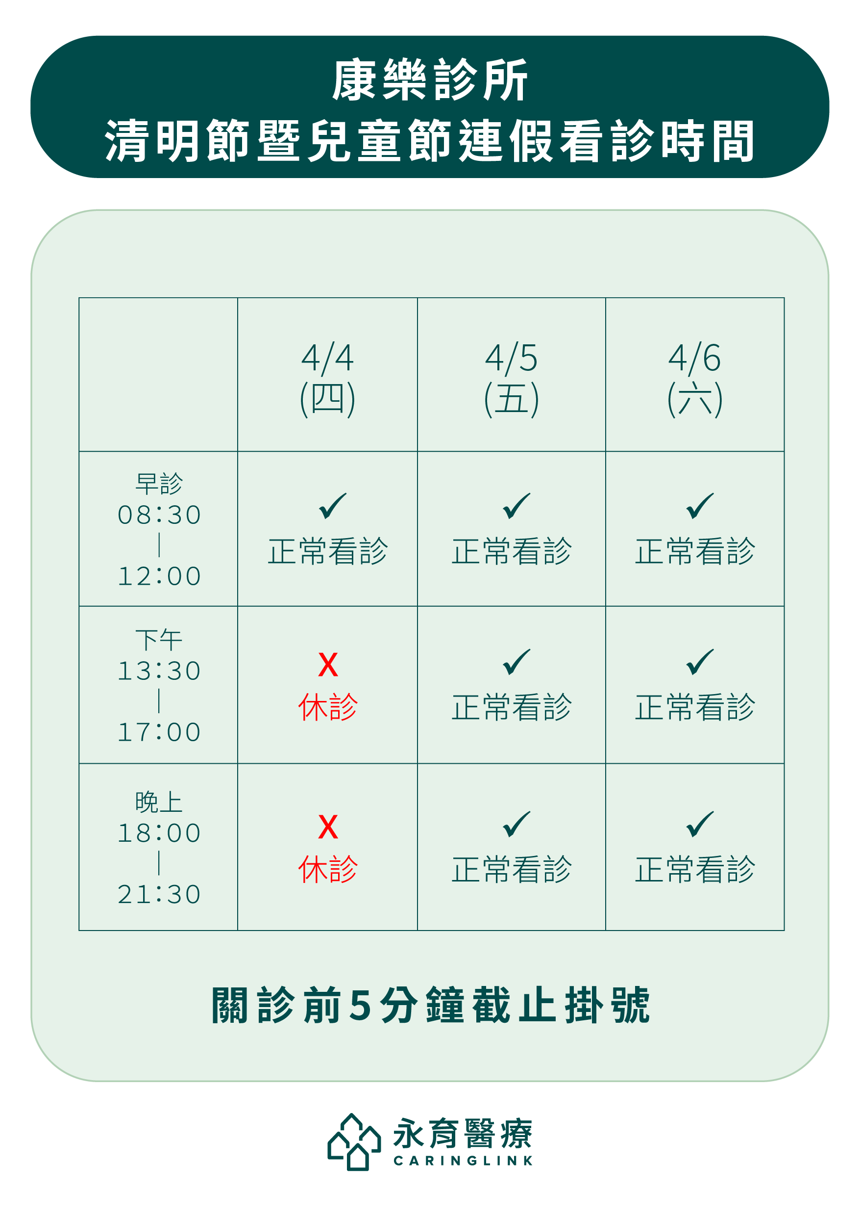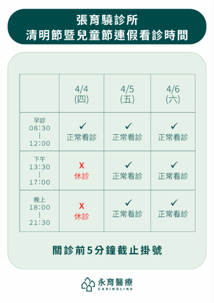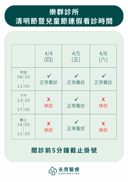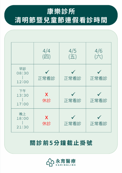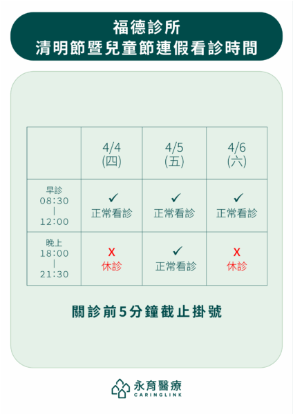 【假期公告】各診所清明節暨兒童節連假門診公告