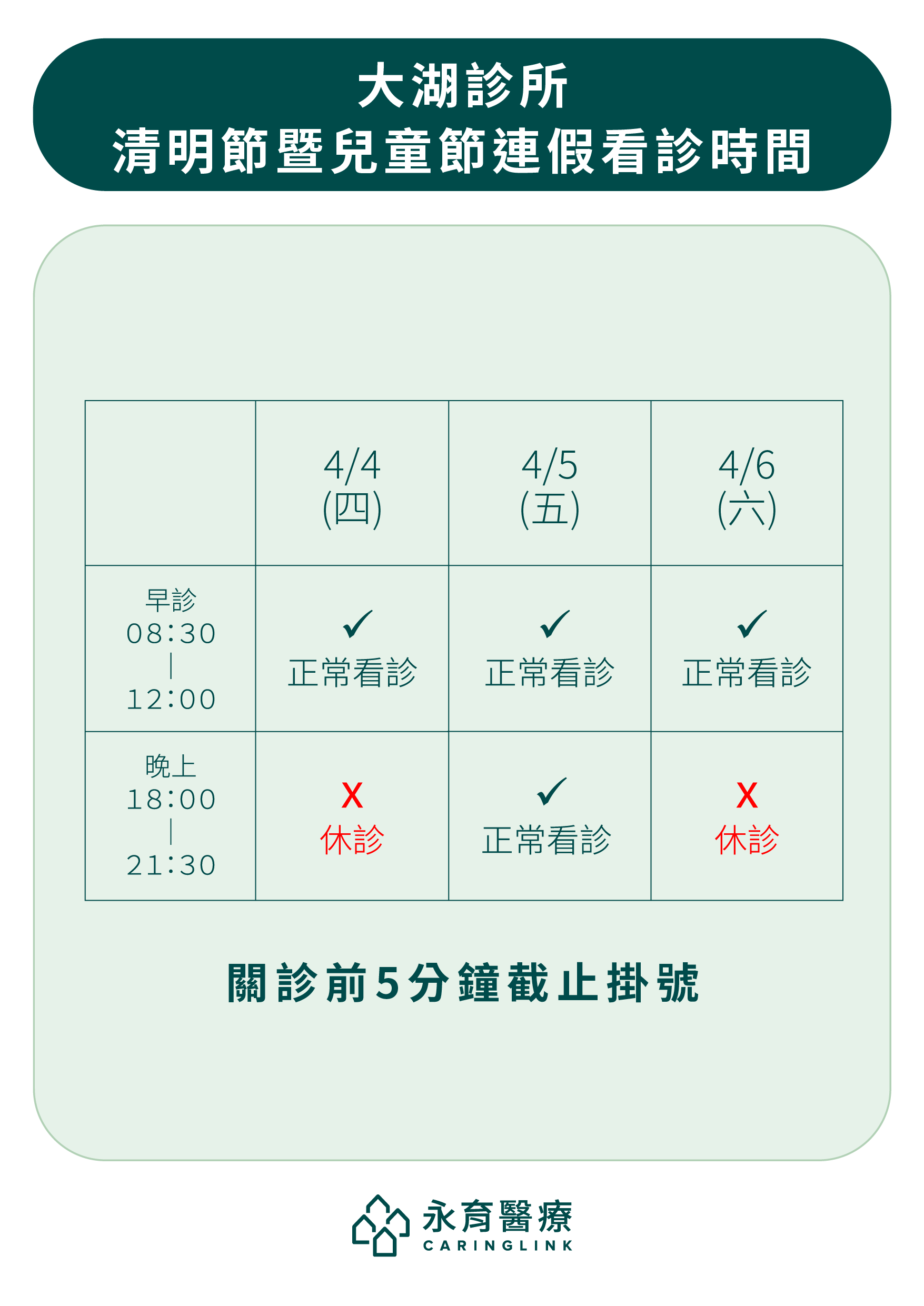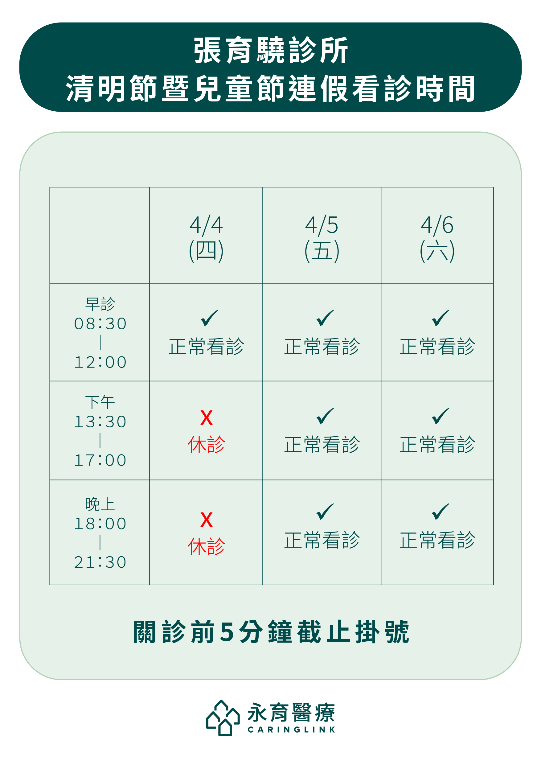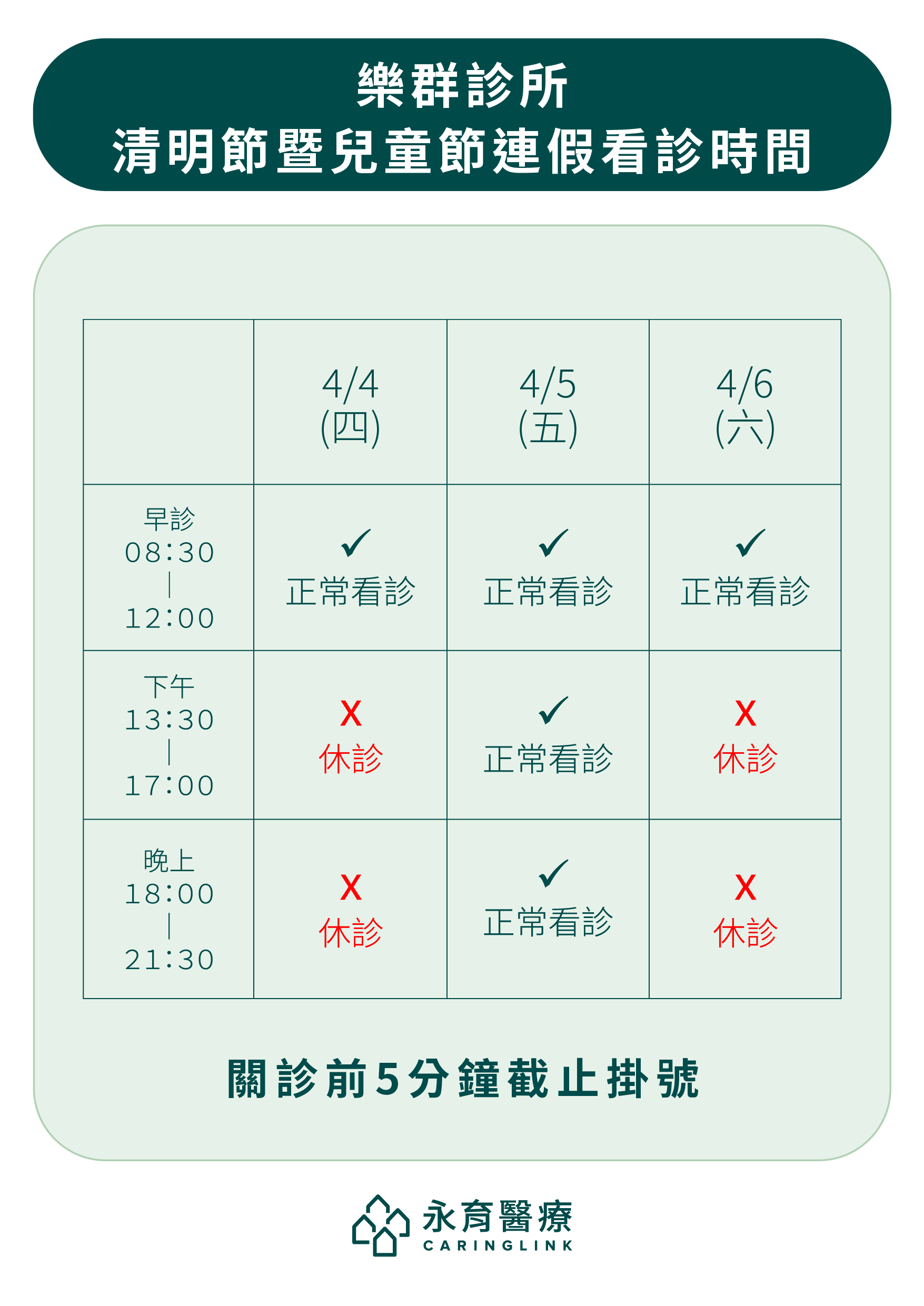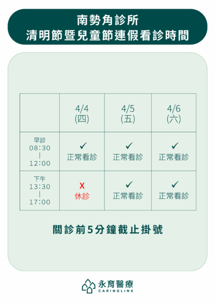 【假期公告】各診所清明節暨兒童節連假門診公告