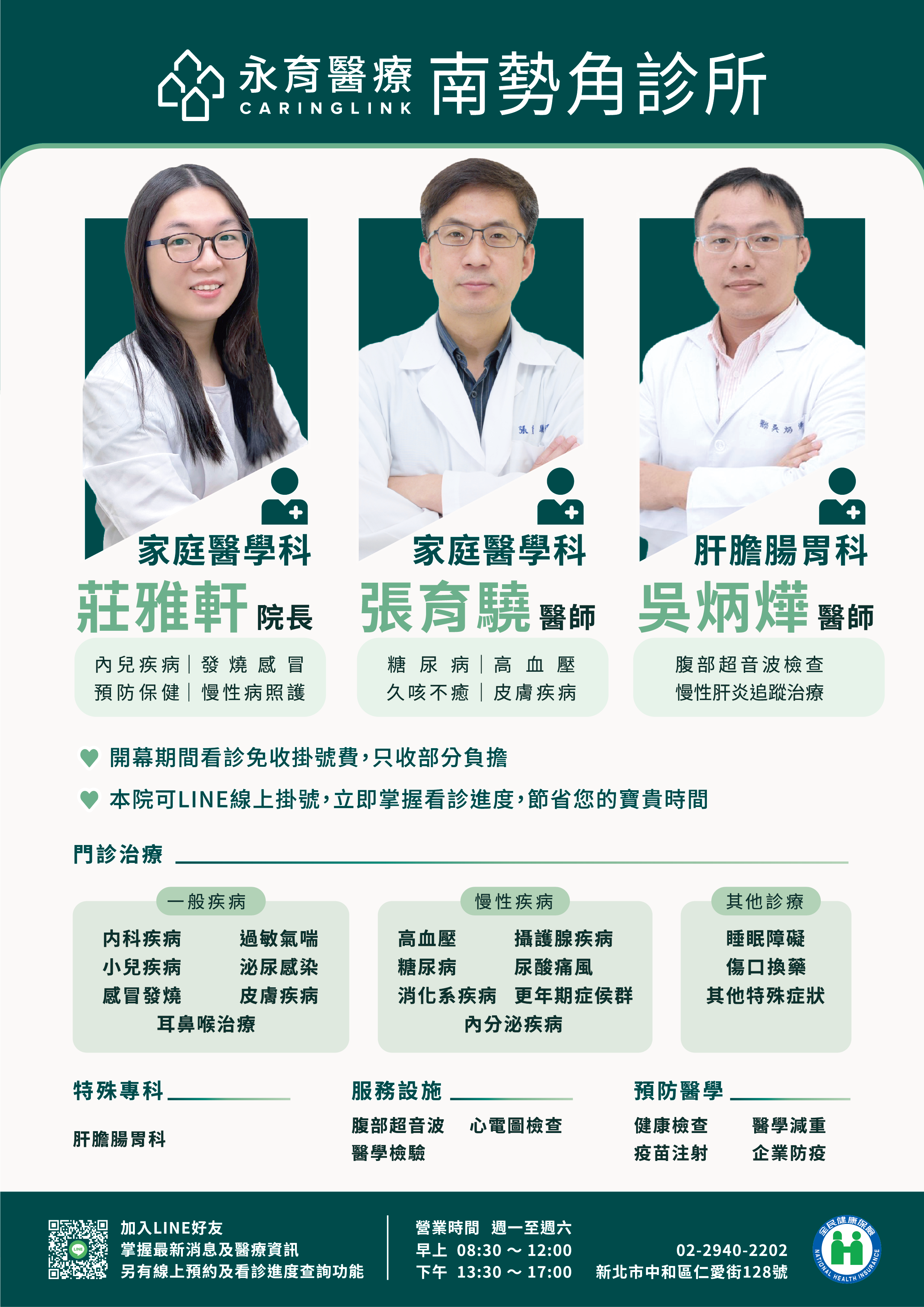 歡迎加入本診所LINE好友即時獲得最新消息與醫療資訊,已開通線上預約及看診進度功能,請多加利用。