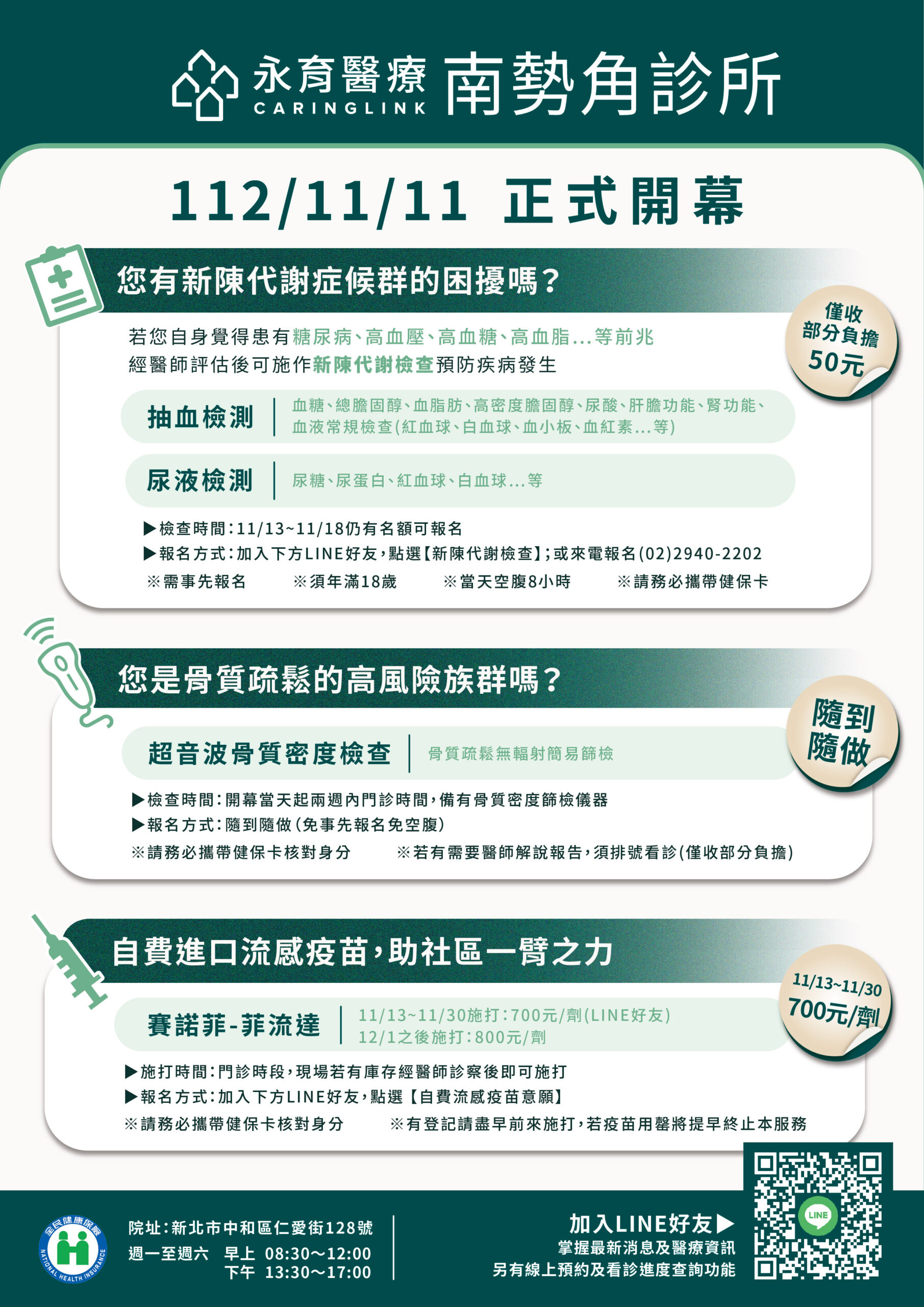 - 自費進口流感疫苗(11/13~11/30 Line好友700元/劑)